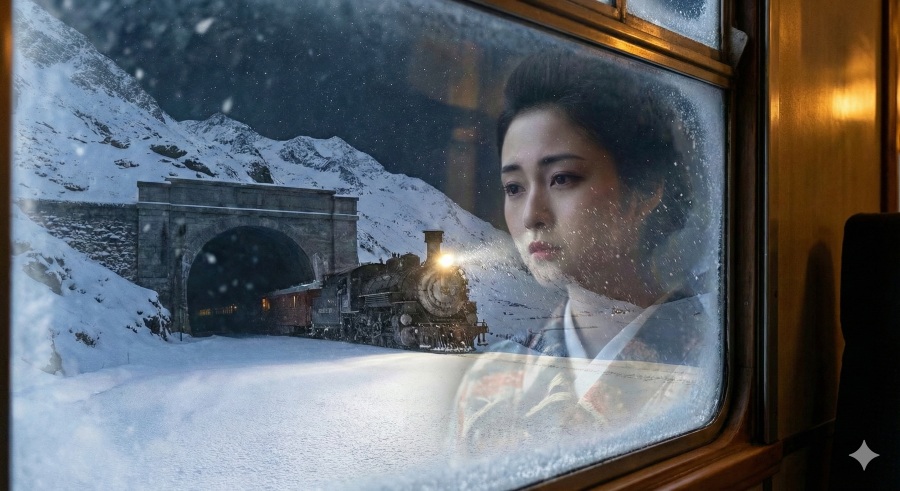 • 原文: 「国境」は群馬県と新潟県の県境(旧国名の境)を指しますが、日本語では「遠い異界へ行く」ような詩的な響きがあります。